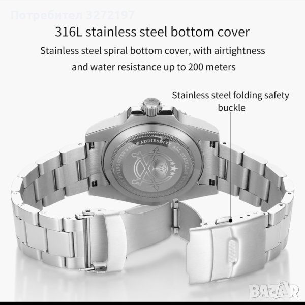 Степен на водоустойчивост: 200 метра водоустойчивост / гмуркане