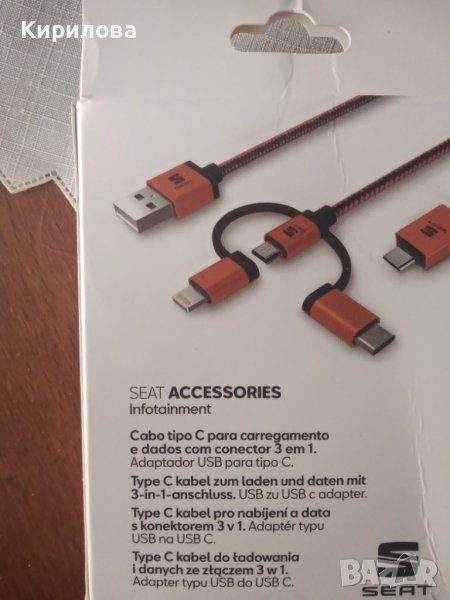 Универсален кабел за зареждане и пренос на данни за автомобил и домашни условия USB тип C 3 в 1, оригинален,ново,произход Англия