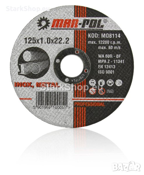 Режещите и абразивните дискове MAR-POL са по-издръжливи и позволяват бърза, лесна и икономична работа Високото качество се влияе от внимателния подбор и комбинация от висококачествени суровини Техният добре обмислен дизайн: хомогенна смес от висококачествени качествен абразивен материал и синтетични смоли, подсилени със слоеве стъклени влакна.