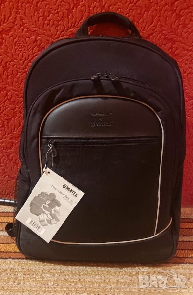 Висок клас раница Umates. Размер: 40 х 30 х 5 см. Много и удобни джобове освен отделението за лаптоп,което е с възможност за поставяне на катинар върху ципа. Раницата е с рефлектори 3M Scotchlite, които повишават вашата безопасност в движението. Притежава еластично окачване за защита на лаптоп, дъждобран, подплатен гръб. Макс. размер на екрана: 17"