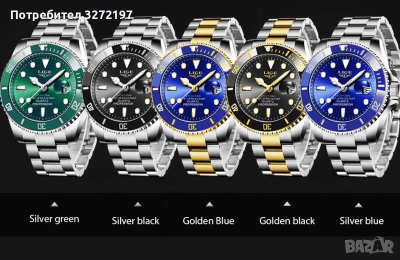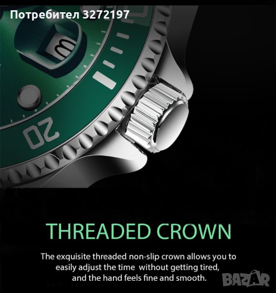 Налични 3 цвята: син циферблат, зелен циферблат, черен циферблат.