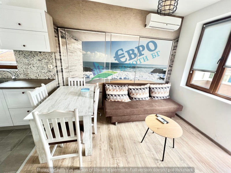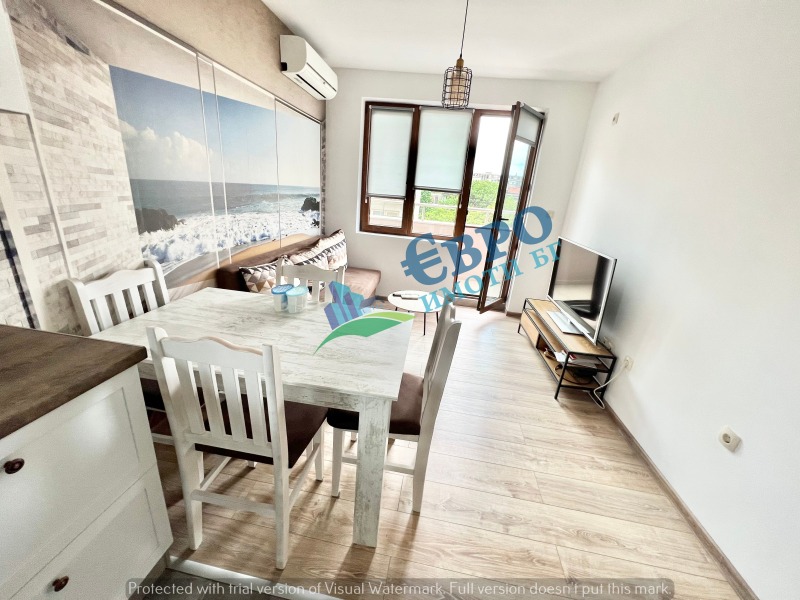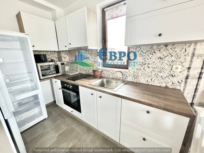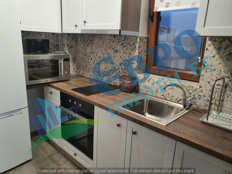 ЕВРОИМОТИ предлага ДВУСТАЕН апартамент с локация: до IX ОУ 'Веселин Ханчев' на тиха и спокойна улица, удобни автобусни спирки, детски градини, училища. ВСЕКИДНЕВНА с вградена кухня с уреди, климатик и излаз към тераса, СПАЛНЯ, оборудвана с двойно легло, луксозна БАНЯ с WC, антре. Кухненски бокс, оборудван с вградени електроуреди: вградена фурна с котлони на керамичен плот, хладилник с фризер, пералня, аспиратор, микровълнова фурна. Сградата е НОВО СТРОИТЕЛСТВО с луксозни общи части и регулиран достъп. ПЪЛНА ИНФОРМАЦИЯ на тел: 0895625545 и в офис на ул. Христо Ботев 106 - партер (моля, предупредете за идването си на посочен телефон, всички срещи с клиенти са организирани в график)