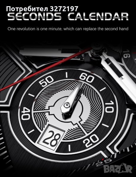 Характеристика: Устойчив на удар, Фосфоресциращи стрелки, Дата, Хронограф, Водоустойчив