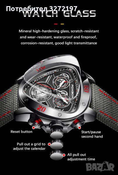 FOXBOX кварцов часовник, водоустойчив, хронограф, календар-ДИЗАЙН ФОРМУЛА 1