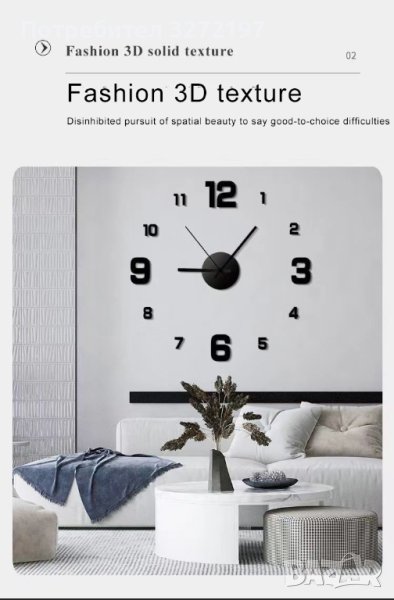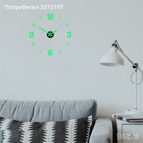 3D часовник за стена голям размер, фосфорисциращи стрелки, модерен дизайн