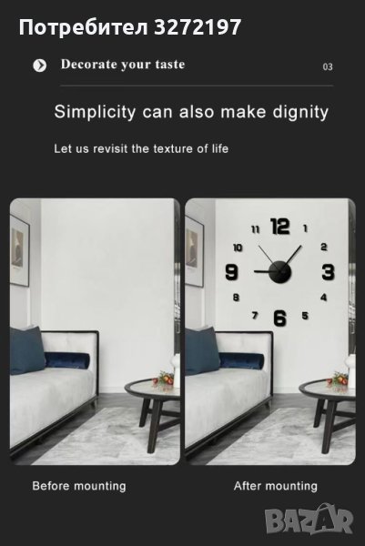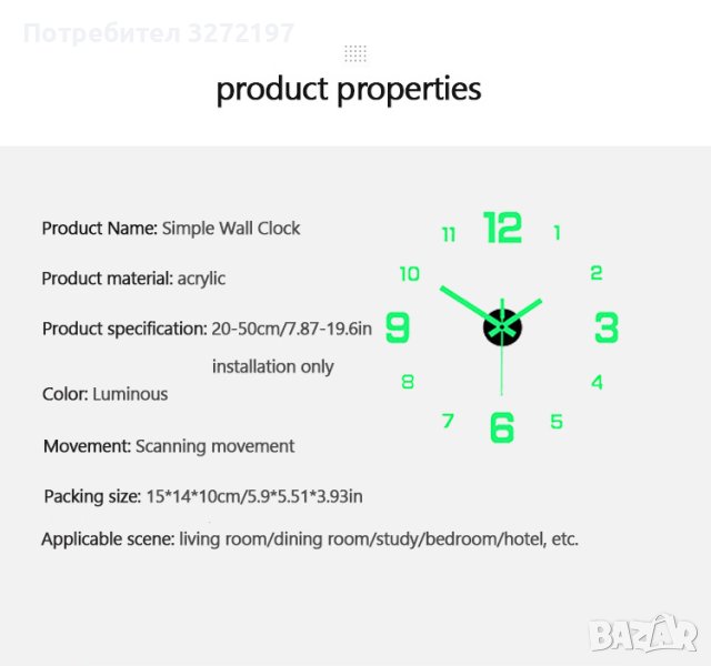 Крайният размер на часовника зависи от начина, по който го подредите на Вашата стена.