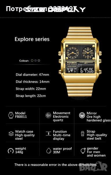 FOXBOX кварцов часовниk модел 2023, водоустоичив, уникален дизайн