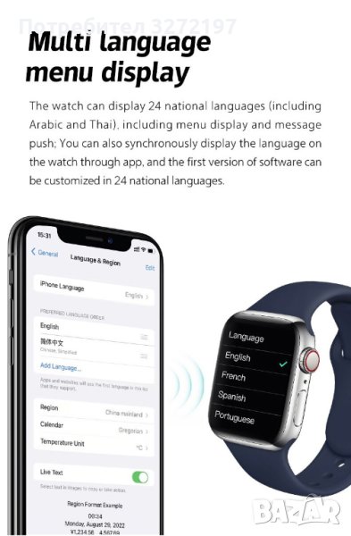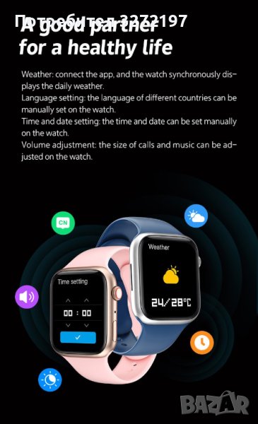 14. Смарт часовник i8 pro max поддържа ios 9.0 и android 5.0