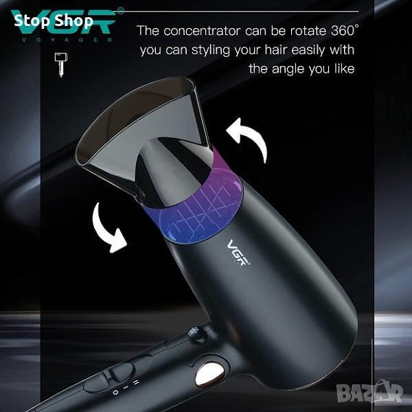 Това е универсален сешоар, с който не само можете да изсушите, но и спретнато да оформите косата си. Дръжката на сешоара е сгъваема и затова ще заема много по-малко място в пътната чанта. Сешоарът е с 2 скорости на мощността, отговорни за по-силна или по-слаба въздушна струя. Двете степени на температура помагат за регулиране на излъчваната топлината. Сешоарът е снабден и с бутон за охлаждаща функция, при която нагревателите спират да работят и се усеща студена въздушна струя. Благодарение на тази опция, уредът осигурява оптимална температура за трайно фиксиране на прическата, а също и предпазва косъма от допълнително изсушаване и загуба на влага. Уредът е със защита от прегряване, допринасяща за безопасна употреба.