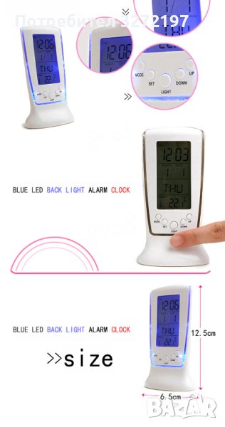 LED Цифров часовник/будилник със синя подсветка, електронен календар, термометър, Аларма