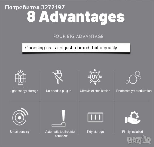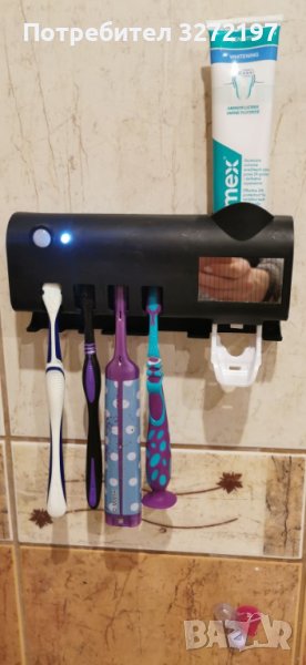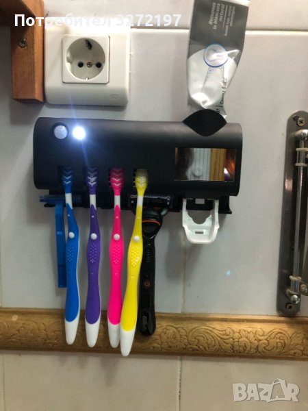Соларен UV Стерилизатор за 4 бр. Четки за Зъби с Поставка и Дозатор за