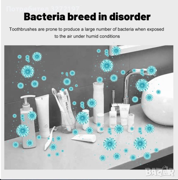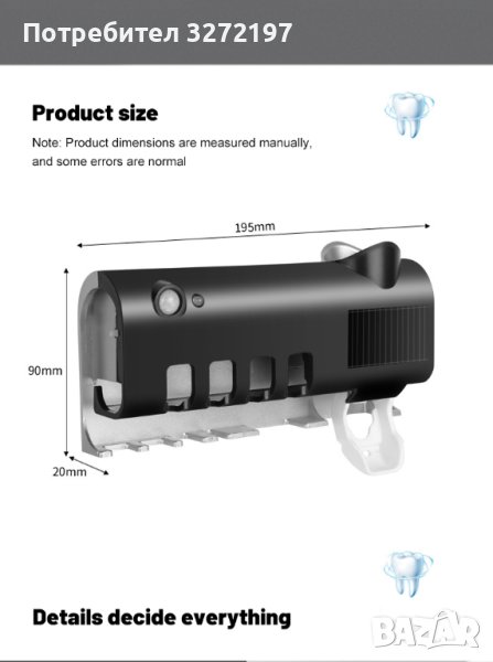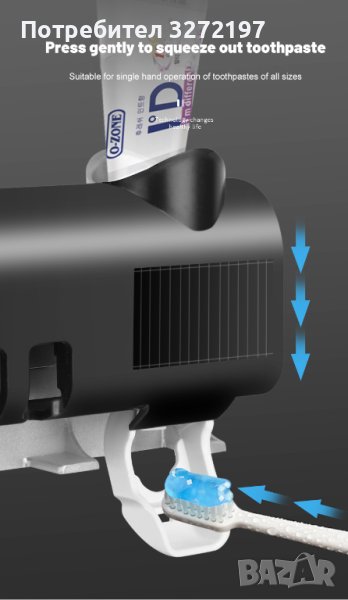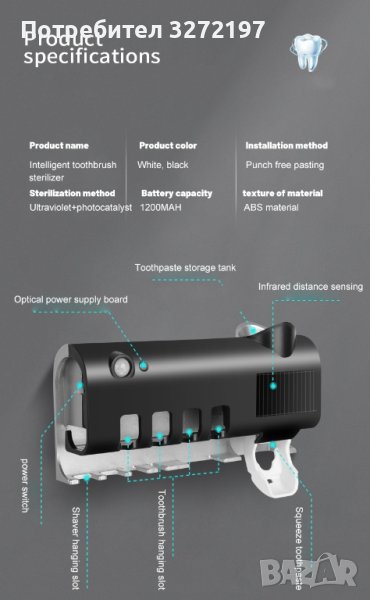 Соларен UV Стерилизатор за Четки за Зъби с Поставка и Дозатор за Паста за Зъби+USB зареждане
