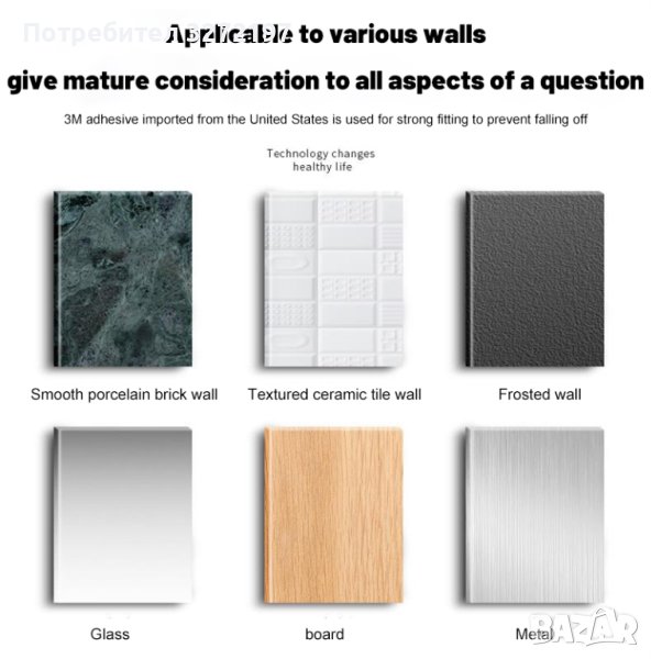 Не заема много място и е удобен и лесен за монтиране, може да бъде залепено към плочките или фиксирано към стената с винтове.