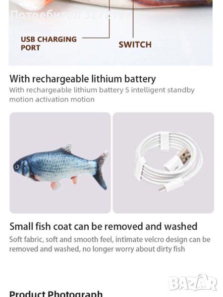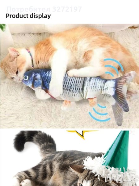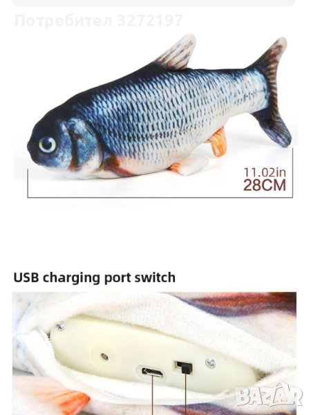 Интерактивна играчка за котка и куче,подскачаща риба,батерия, USB зареждане.Симулация на риба,електрическа флопи рибка котешка и кучешка играчка, движеща се риба, реалистична плюшена симулация на махаща рибка , движеща се ,USB зареждане