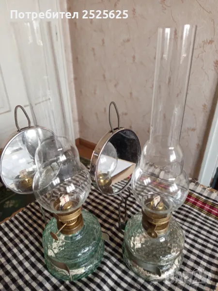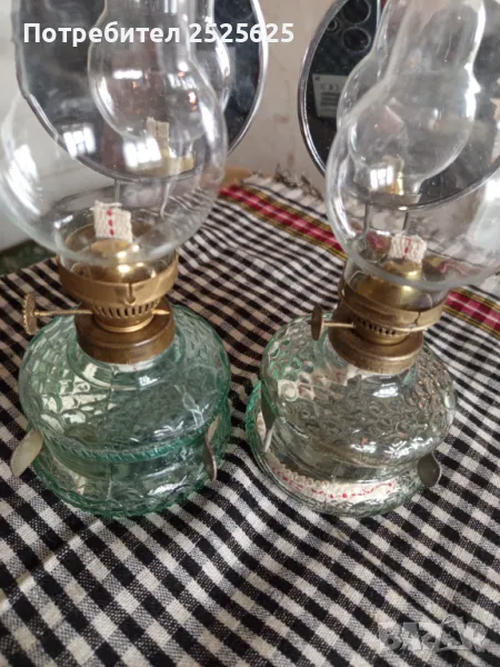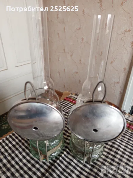 Цената е за двете, една по договаряне. Работещи, реновирани метални части и огледала, нови шишета ф38мм, с фитили.