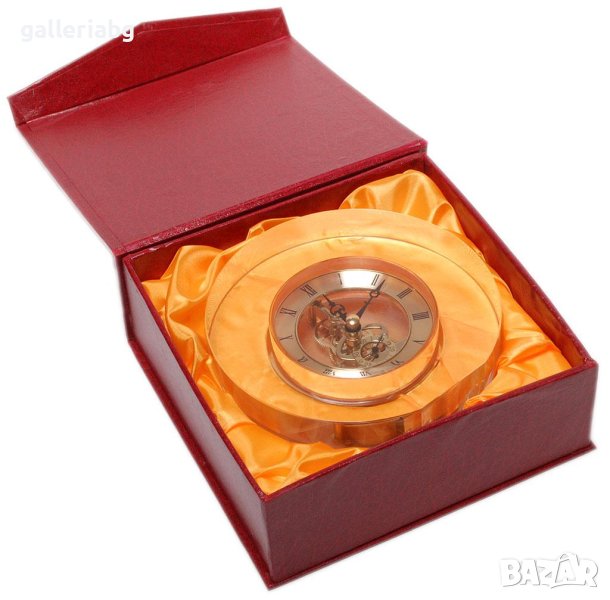 Елегантен настолен часовник от стъкло, подходящ за офиса или дома. Предлага се в красива червена кутия.