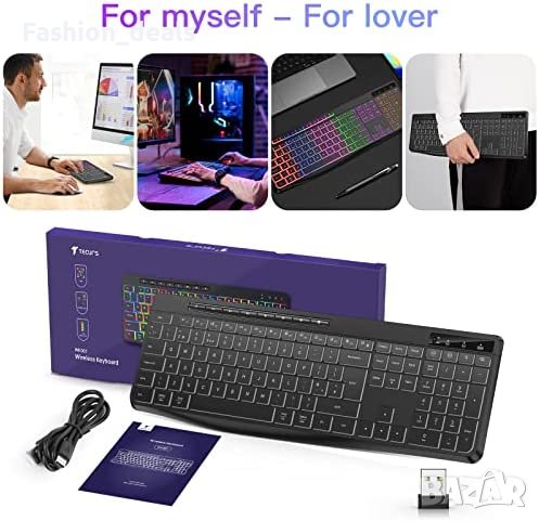 Нова Безжична ергономична игрална клавиатура преносима с LED подсветка