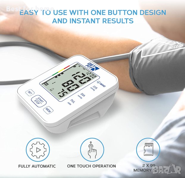 Get FitМедицински апарат за измерване на кръвно налягане на горната част на ръката,LCD дисплей