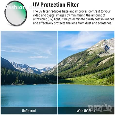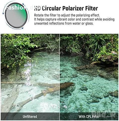 Комплектът филтри за обективи Neewer 72mm CPL UV включва кръгов поляризатор и UV защитен филтър за 72mm обективи на фотоапарати. CPL филтърът намалява отблясъците и отраженията, а UV филтърът блокира вредните UV лъчи и предпазва обектива от надраскване и удари. Филтрите са изработени от многослойно HD оптично стъкло с 30 слоя нанопокрития от двете страни. Изключително тънката алуминиева рамка предотвратява тъмните ъгли и винетирането и осигурява неплъзгащ се захват. Комплектът включва и кърпичка за почистване на обектива и калъф за филтри.