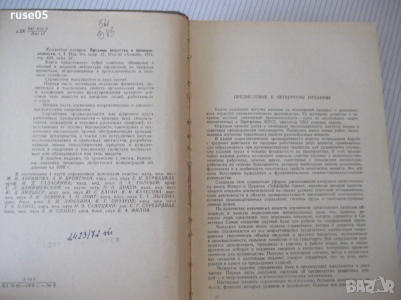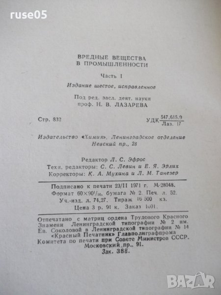 Книга "Вредные вещества в промышл.-том1-Н.В.Лазарев"-832стр. → Обява 40450812