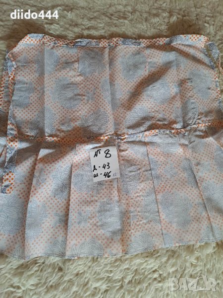 Нови домашни престилки от шарена басма. От средата на долу е с плисета. С джоб отпред. Много красива. Готова за употреба.