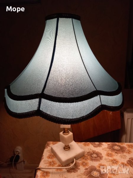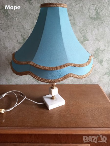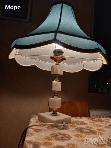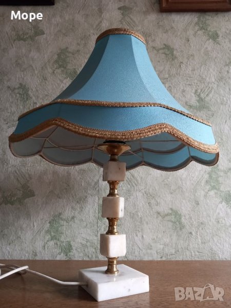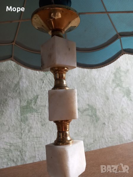 Мраморна нощна лампа с месингови пръстени в син цвят в отлично състояние.