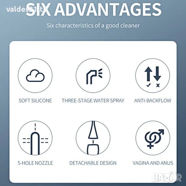 360 градусово впръскване значително подобрява и поддържа на хигиената на интимните зони. Той се използва за промивка на ануса или вагината с цел почистване и освежаване. Особено популярен е в контекста на подготовката за анален секс, като премахва бактериите и понижава риска от инфекции или за поддържане на вагинална хигиена;