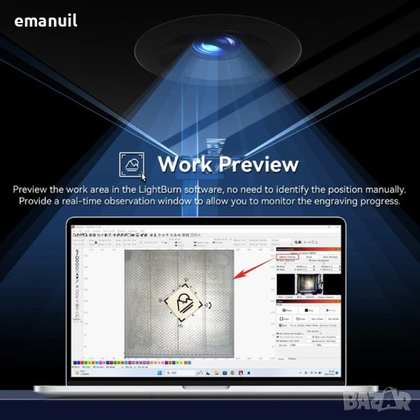 Всяка USB камера може да се включи към LightBurn,но може да се ползват само за наблюдване.