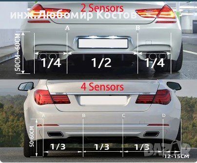 Парктроник за паркиране на автомобили с 4 сензора и звукова индикация.