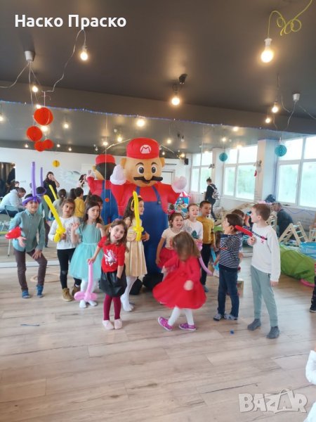 Снимки и игри с голям надуваем костюм -маскот на супер Марио