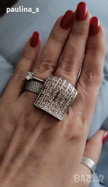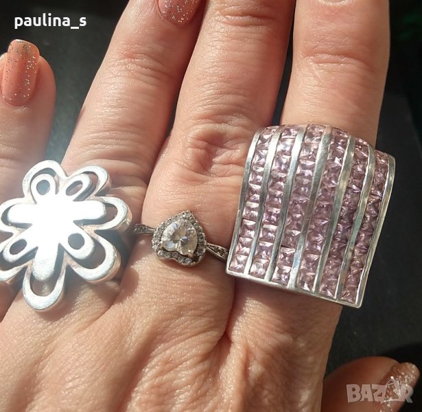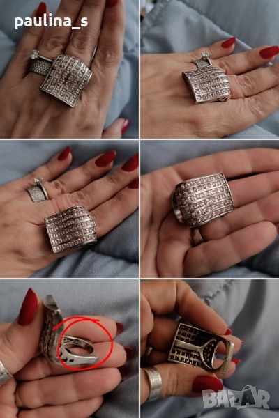 1️⃣ Колаж / Уникален сребърен пръстен с Морганити. Цената е крайна, без пазарлъци 224,99лв / 115 евро. Много ефектен и грамажен, с маркировка и с фасон да убие от завист всички, които не го притежават. Размер 17,5мм вътрешен диаметър. Макар да е много грамажен, не се продава на грамаж, моля не питайте колко грама е. Мащабирането е на дланта и пръста.