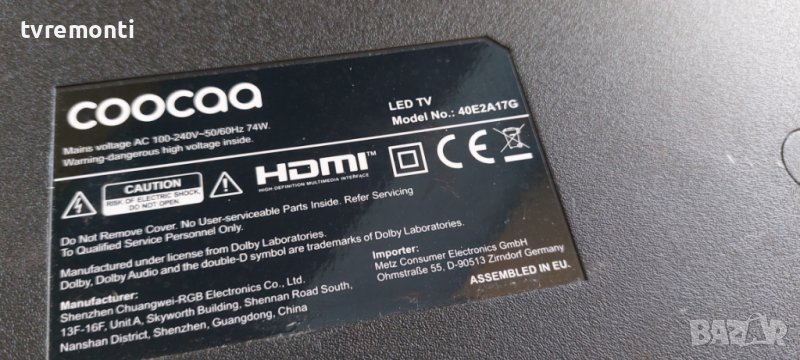 MAIN BOARD TP.MS3663T.PB751 FOR COOCAA 40E2A17G DISPLAY RDL400FY(QD0-803)(01) Rev.00 V400HJ6-PE1 Rev. C3 Борда е гарантирано работещ Демонтиран от телевизор COOCAA модел 40E2A17G със счупен дисплей RDL400FY(QD0-803)(01) Rev.00 V400HJ6-PE1 Rev. C3 тесвана от нашия техник