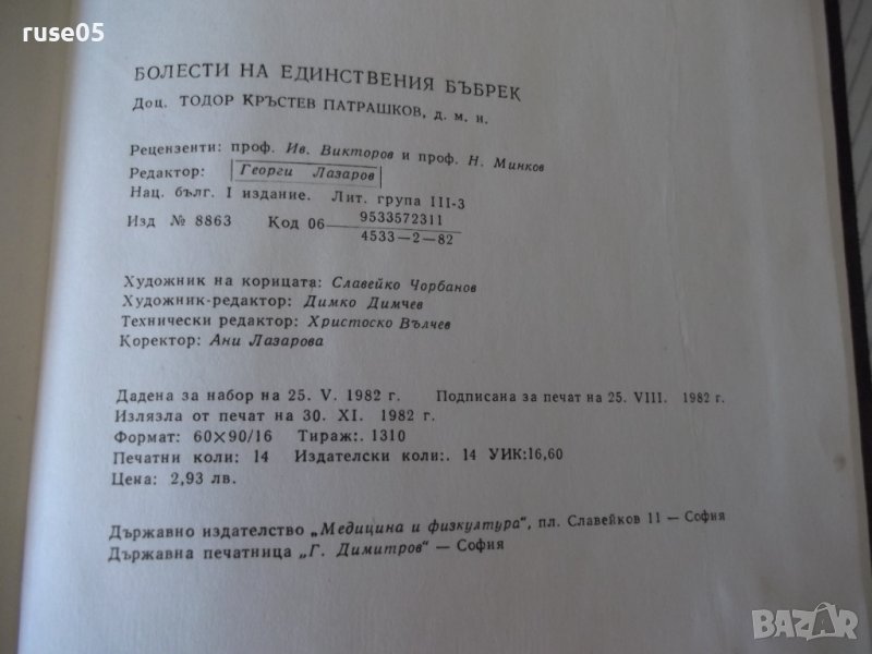 Книга "Болести на единствения бъбрек-Т.Патрашков" - 208 стр. → Обява 40456612