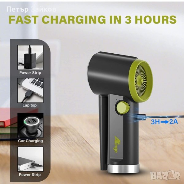 🔋【Акумулаторна Air Duster】 Electric Air Duster има технология за бързо зареждане, оборудвана с Type-C USB порт за зареждане, напълно заредена (3H), след пълно зареждане може да работи непрекъснато в продължение на 15-30 минути, времето за използване зависи от продухването сила. Които могат да се зареждат по всяко време чрез лаптоп или мобилно захранване.