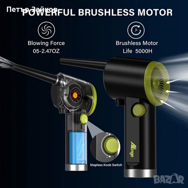 🌀【Дизайн на безстепенен превключвател】 Air Duster има дизайн на безстепенен превключвател. Захранването и бутонът за контрол на скоростта са интегрирани. Трябва само веднъж да щракнете върху превключвателя на захранването, за да работи. Благодарение на безстепенния дизайн за управление на скоростта, той може да се управлява само с една ръка. Обърнете се наляво, за да намалите вятъра, и завъртете надясно, за да добавите вятъра. Накрайникът или четката за почистване могат да се сменят при необходимост.