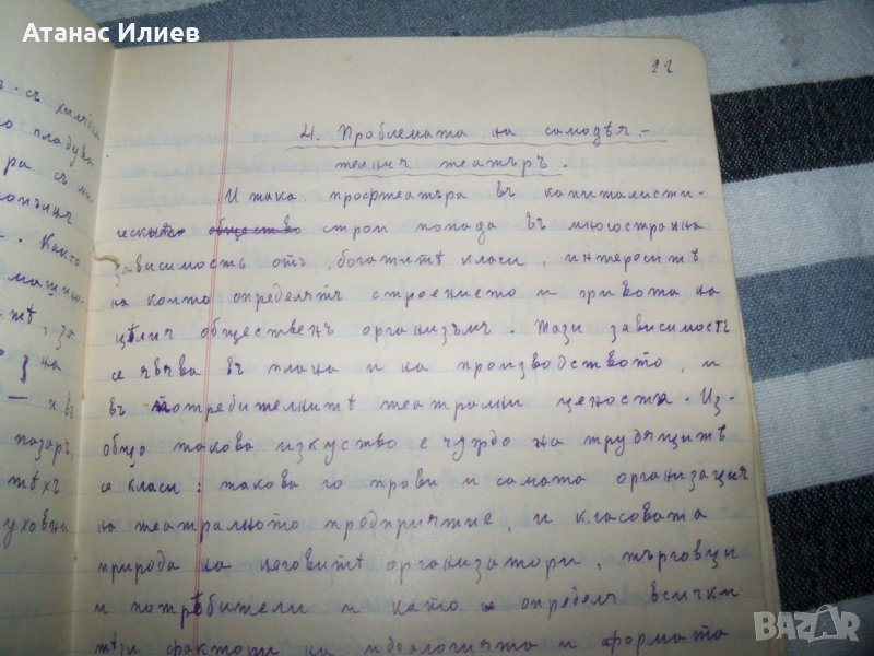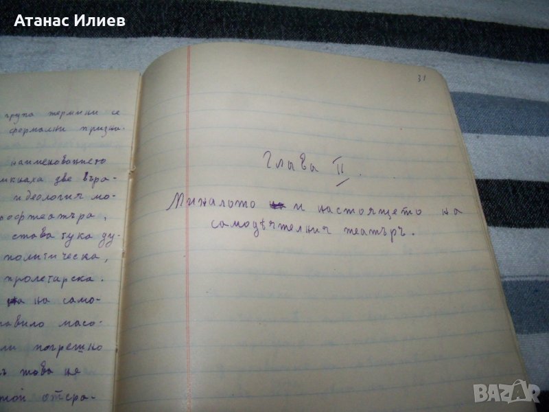 Стар ръкопис "Самодеятелен театър" от В.В. Тихонович в превод на българският драматург и пръв директор на Театъра на Народната армия, Александър Гиргинов. Ръкописа е от 30-те години на миналия век и е в обем от 80 стр. Част от листовете се отделят от книжното тяло, но няма липсващи страници.