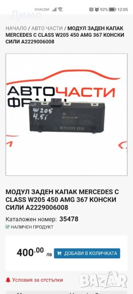 МОДУЛ ЗАДЕН КАПАК MERCEDES C CLASS W205 450 AMG 367 КОНСКИ СИЛИ A2229006008