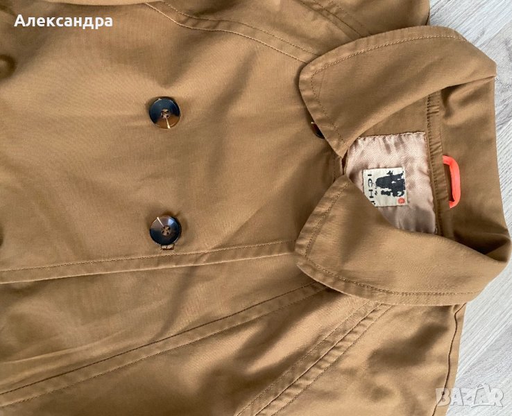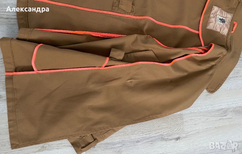 Шлифера е на известна марка, без забележки. Дължина 74 см, дължина на ръкава 64 см, разкроен надолу, което е подходящо за всякаква структура, колата е полувътрешен.