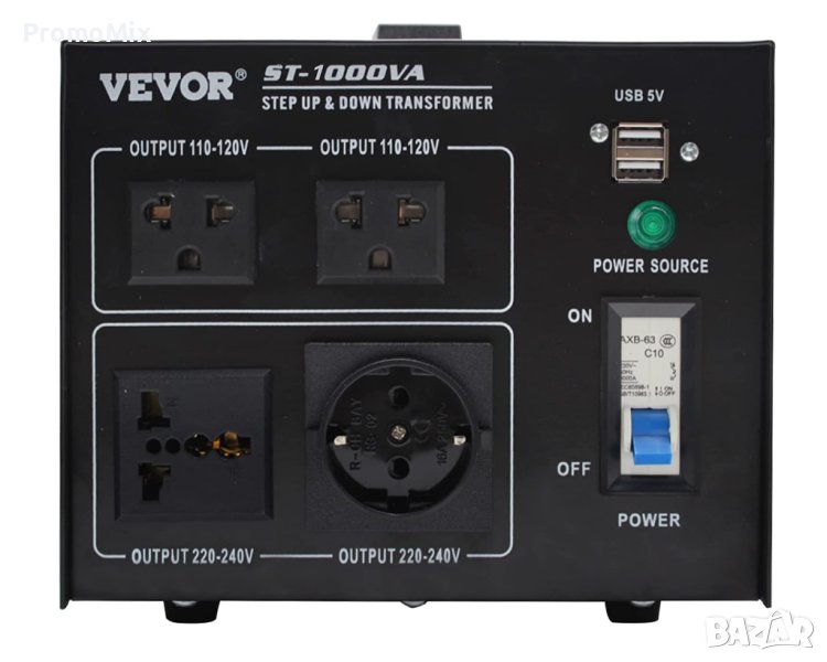 Преобразувателя VEVOR ST-1000VA разпога с автоматичен превключвател, както и защита от претоварване и прегряване.