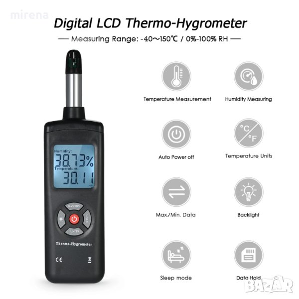 пакети : 1 * Термохигрометър 1 * Ръководство за потребителя (на английски)