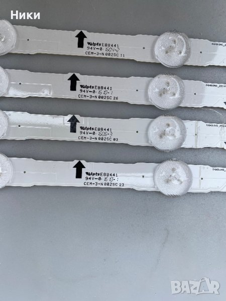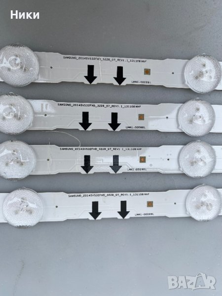 Работещи LED подсветки комплект LM41-00099L / 2014SVS32FHD_3228_07, пръчките са свалени от работещ TV Samsung HG32ED690 със счупен дисплей, модела на дисплея е BN95-03216A. Изпращам по ЕКОНТ с опция тест и преглед!!! С оглед и проба на това, че модулите нямат гаранция, след прегледа, теста и заплащането не приемам възражения и ракламации, щото предварително всички платки и модули са тествани и в изправно състояние се пращат!!!
