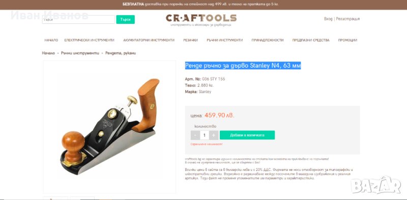 Ренде ръчно за дърво Stanley N4, 63 мм