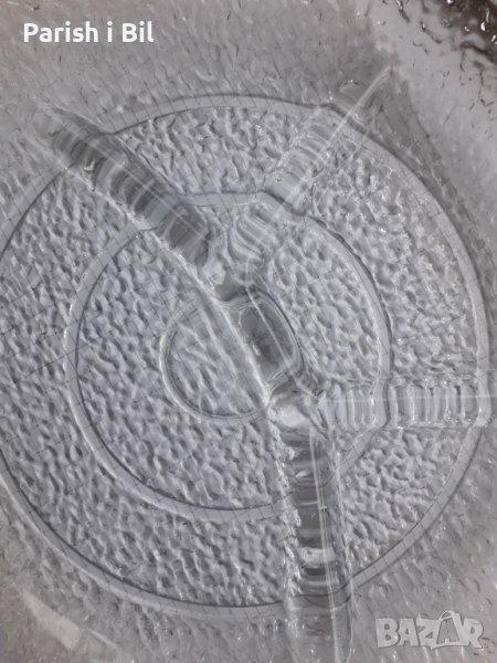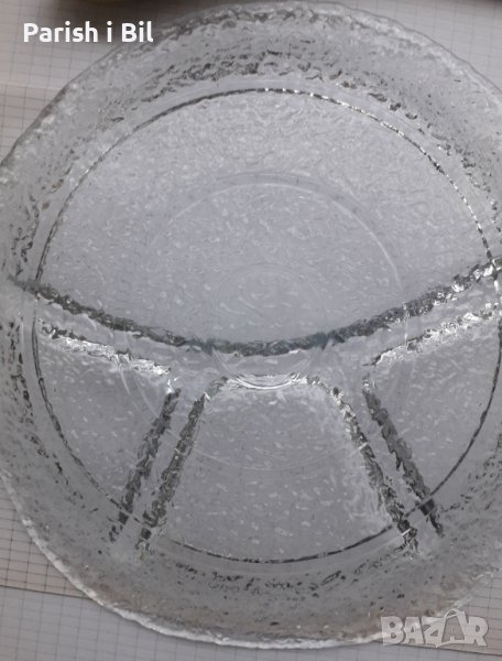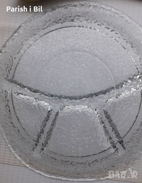 Поднос е много добре изработен ,има релефно стъкло с разделение във вътрешната част на чинията,всичко е ясно видимо от снимките.