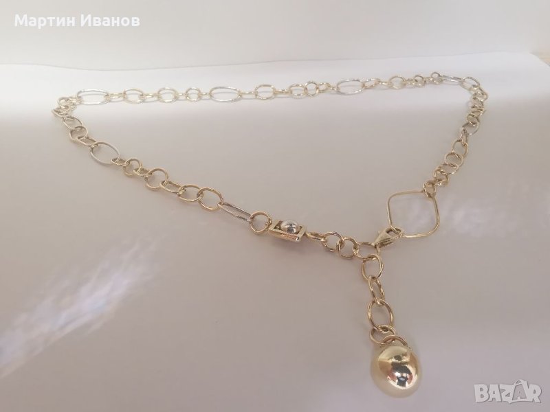 Златно колие с топка, бяло и жълто комбинация, 14к, 585пр, 11.63гр, дължина 48см до закопчалката