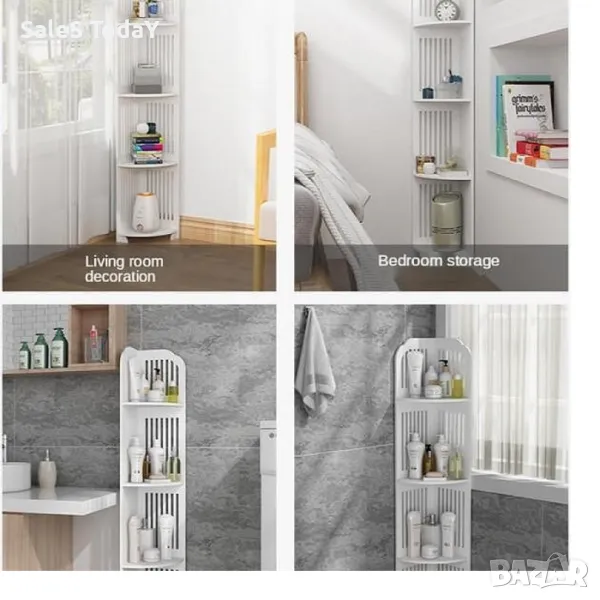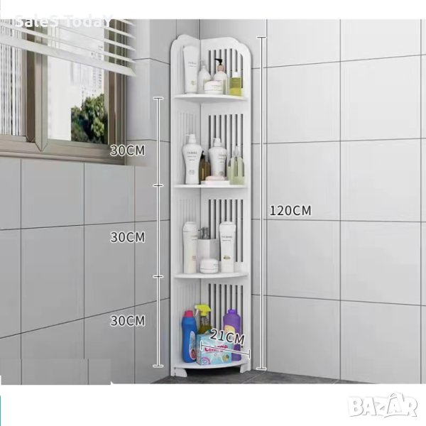 Ъглов рафт за баня, Етажерка за кухня, ъглов органайзер за килер, 120см