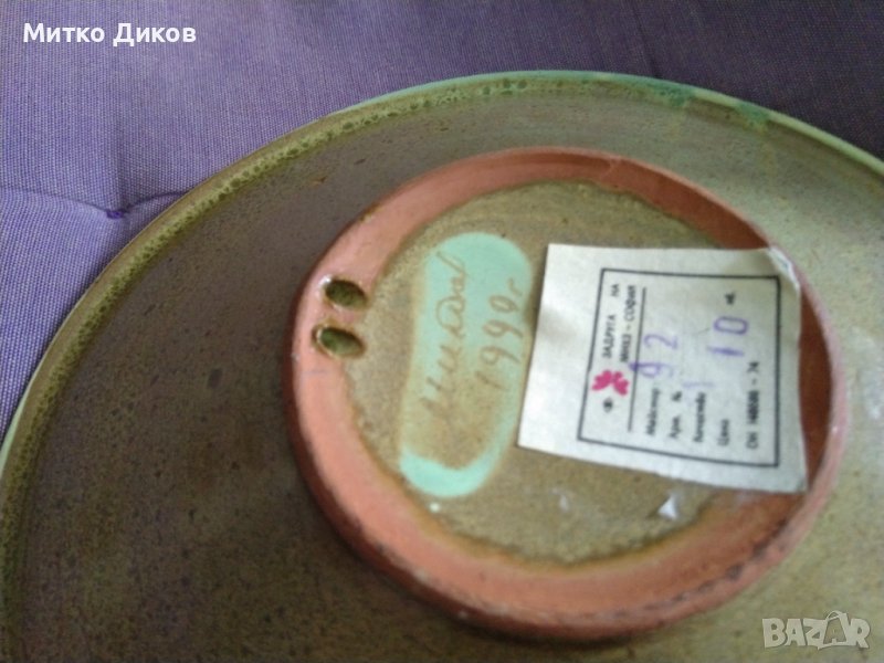 Чиния за стена от соца на задруга МНХЗ София ръчна изработка-подписана-стара цена тогава-10лв-фи 217 → Обява 40487422