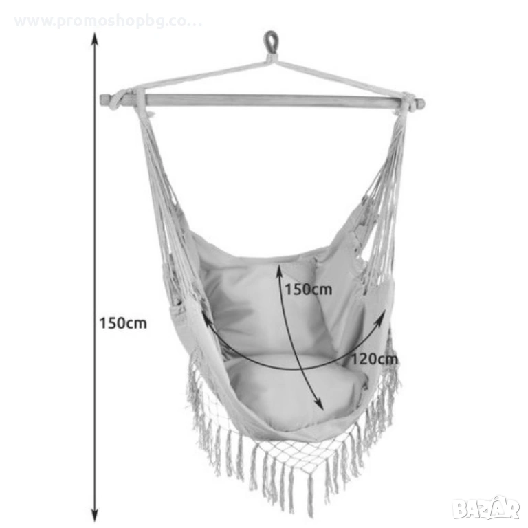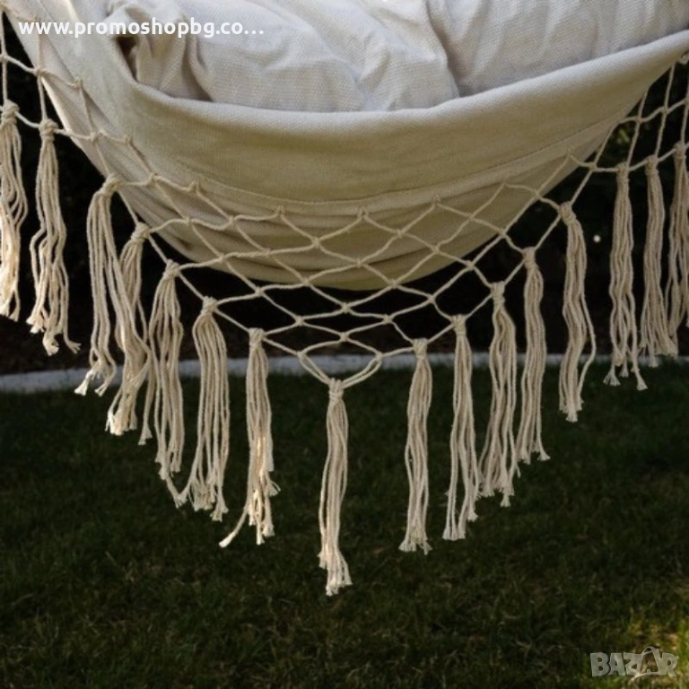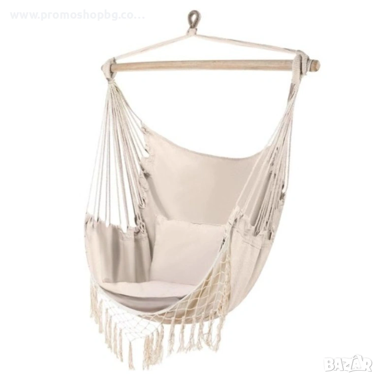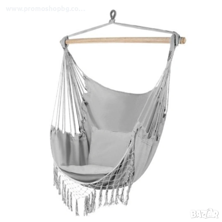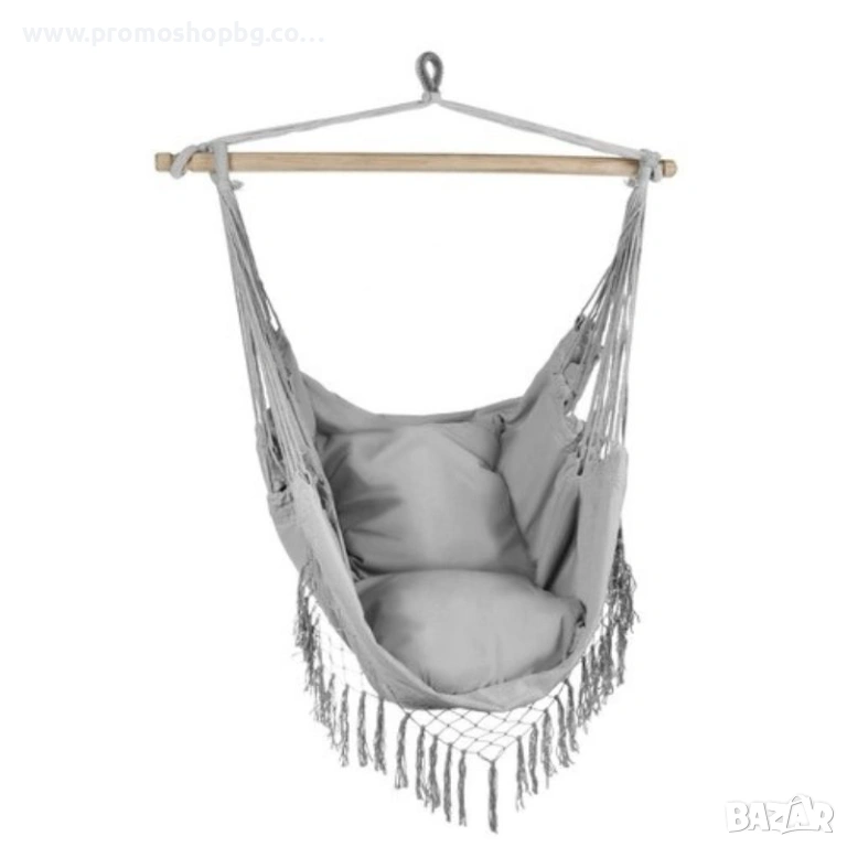 Хамак тип бразилски стол с дървена рейка Gardlov, 2 бр Възглавници, СИВ или БЕЖОВ