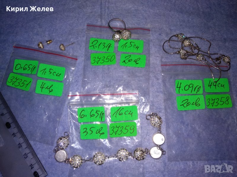 ВТОРАТА СНИМКА е ИЛЮСТРАТИВНА - СНИМАН Е КОМПЛЕКТА от ПРЪСТЕН, КОЛИЕ, ГРИВНА и ОБЕЦИ - МОЖЕ да НАМЕРИТЕ ОБЯВИТЕ с ГРИВНАТА, КОЛИЕТО и ОБЕЦИТЕ в ПРОФИЛА ми ЧРЕЗ ТЪРСАЧКАТА КАТО НАПИШЕТЕ ПЕТЦИФРЕНИЯ НОМЕР от СЪОТВЕТНОТО ЕТИКЕТЧЕ! МОЖЕ да се ЗАКУПЯТ КАКТО ПООТДЕЛНО, ТАКА и ЗАЕДНО по НАПИСАНИТЕ в СЪОТВЕТНИТЕ им ЕТИКЕТЧЕТА ЦЕНИ!!! Пускам голяма СЕРИЯ от най-разнообразни СРЕБЪРНИ БИЖУТА - украшения, кръстчета, медальони, пръстени, обеци, колиета, брошки, гривни, гердани и други най-различни; повечето са от СРЕБРО , има и някои посребрени, позлатени, бронзови, медни, неръждаема стомана, САЧАН , и други подобни ювелирни материали и изделия. Някои са подходящи и за хенд-мейд материал. Почти всички са в ОТЛИЧНО състояние - СНИМКИТЕ ги ОНАГЛЕДЯВАТ!!! Много от тях са инкрустирани със скъпоценни или полускъпоценни камъни. Повечето са нови, има и старинни, ретро, арт, ръчна изработка, ВЪЗРОЖДЕНСКИ накити; както и МНОГО други интересни неща - имам НАД 25000 обяви в профила си - За ВСЕКИ по НЕЩО...!.Изпращам по Еконт или Спиди винаги с Опция Преглед и Тест и Отстъпка-транспорт.