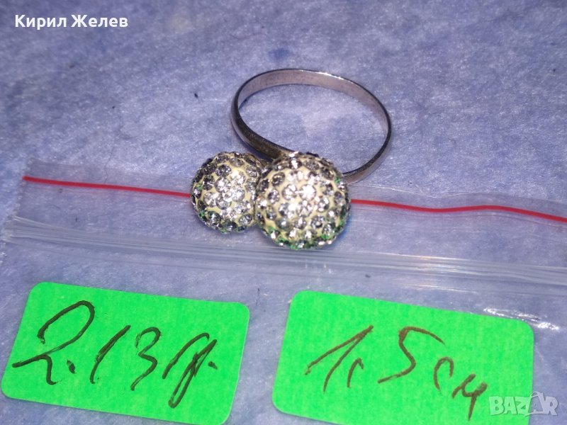 СРЕБЪРЕН ФЕШЪН АРТ ПРЪСТЕН СРЕБРО 925 Част От КОМПЛЕКТ с БЯЛ ЕМАЙЛ и КРИСТАЛИ 37350