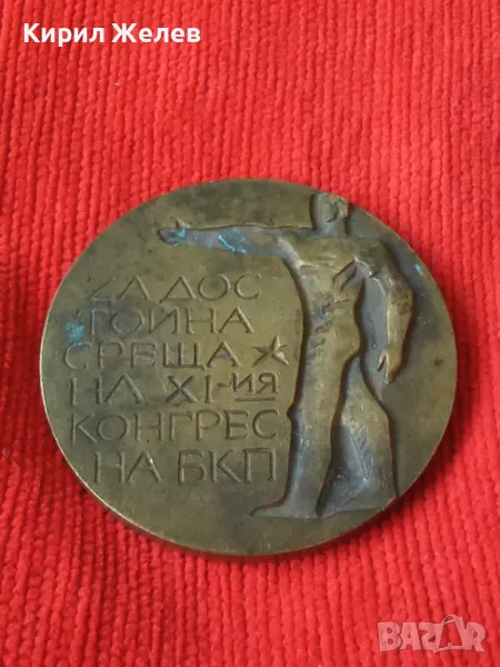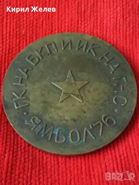 БРОНЗОВ ПЛАКЕТ ЯМБОЛ 76г. ЗА ДОСТОЙНО ПОСРЕЩАНЕ НА XI КОНГРЕС НА БКП 37911